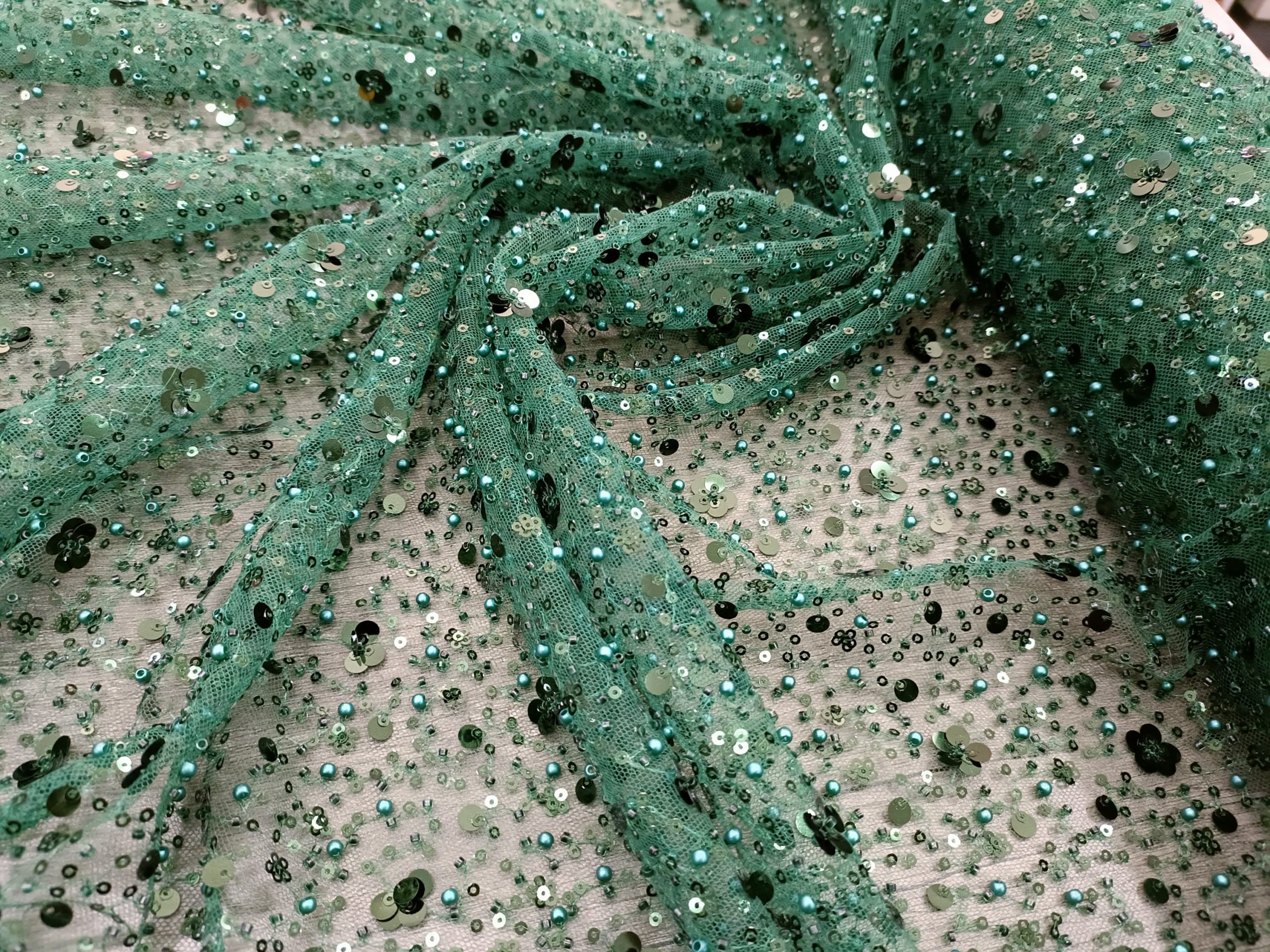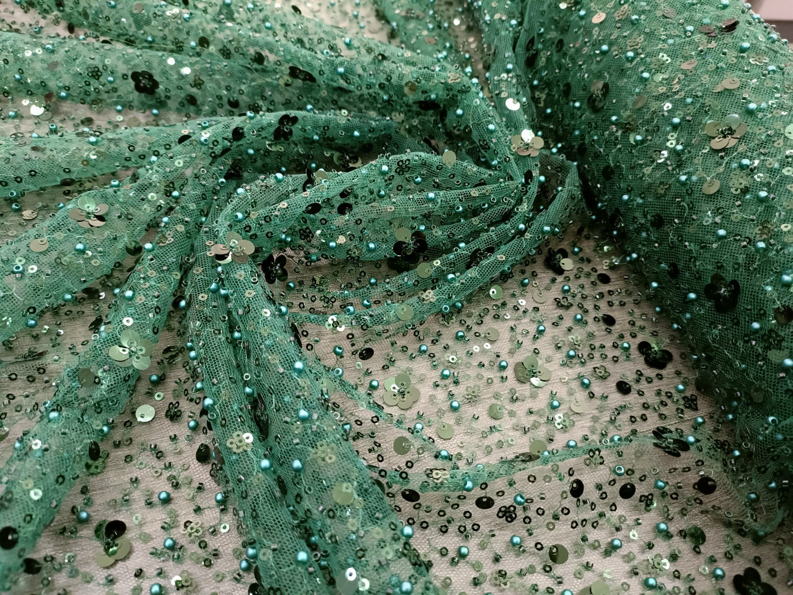 Allover mesh tulle embellished with sequins and beads
