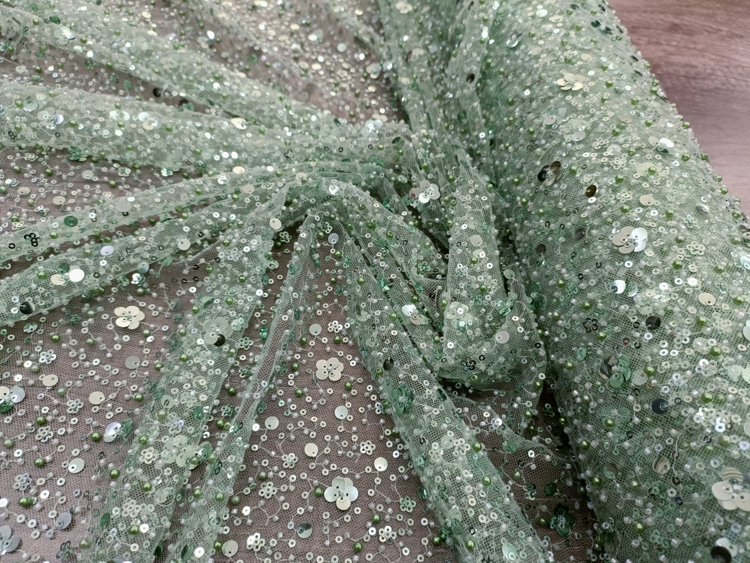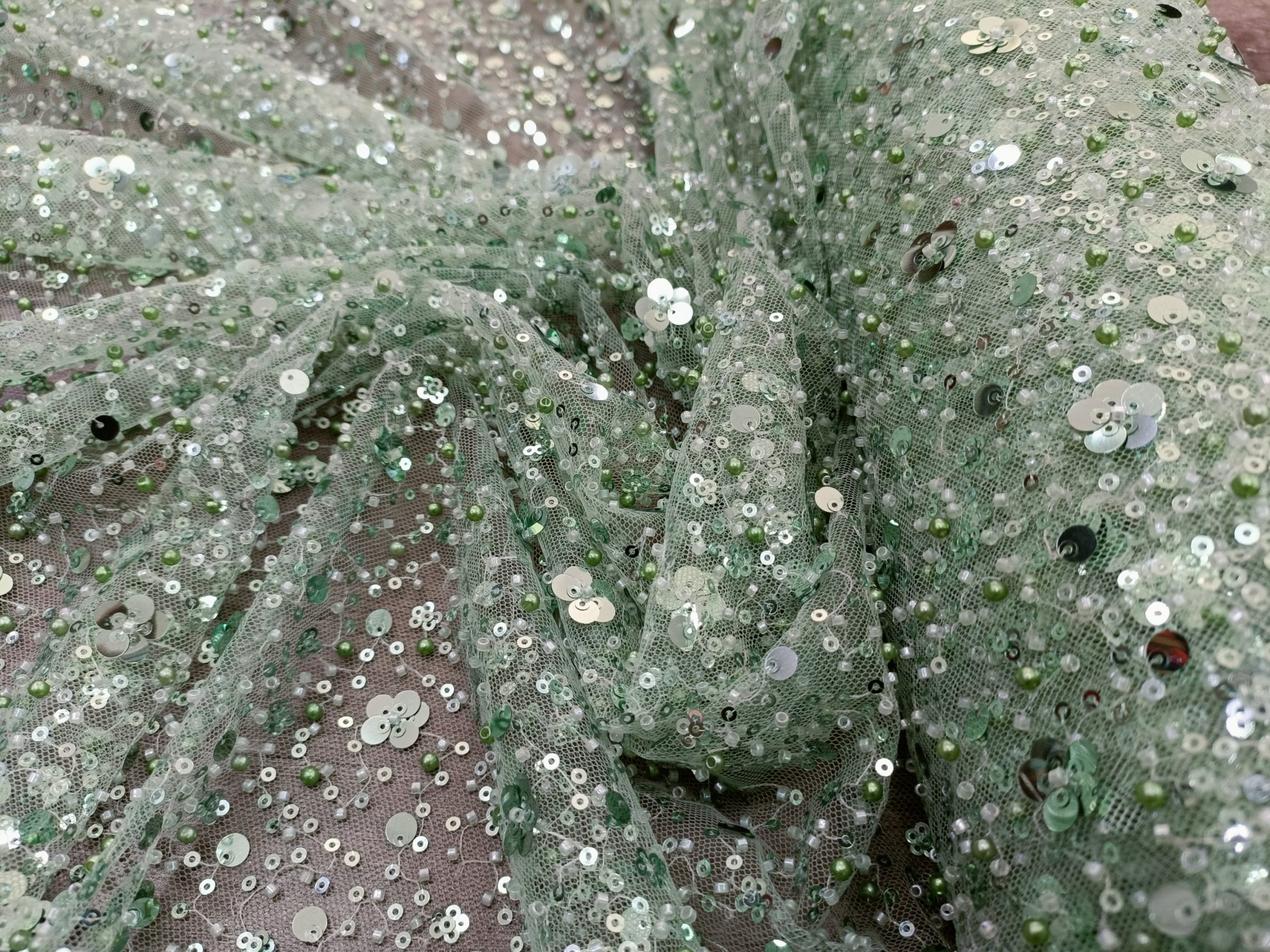 Allover mesh tulle embellished with sequins and beads